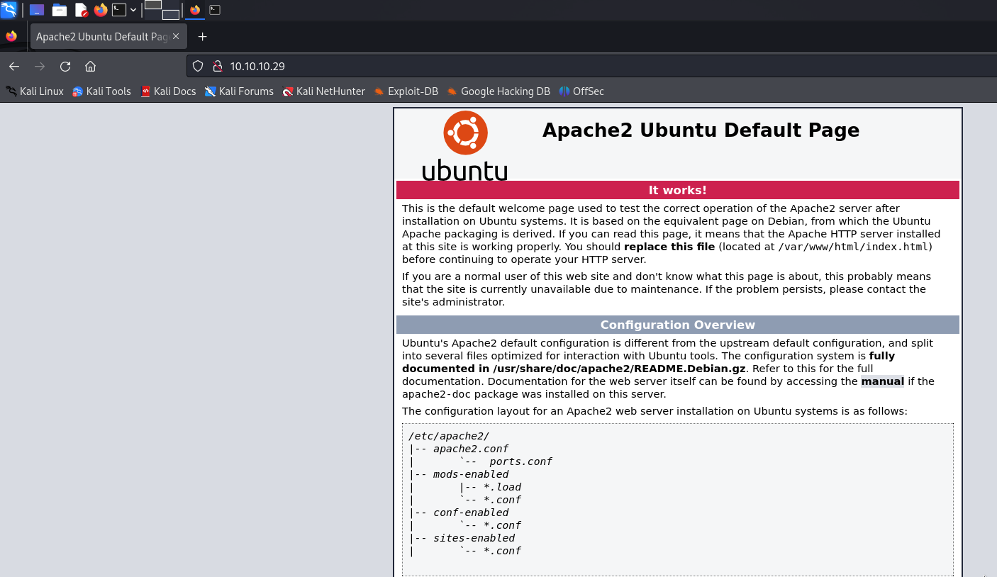 * Connected to 10.10.10.29 (10.10.10.29) port 80