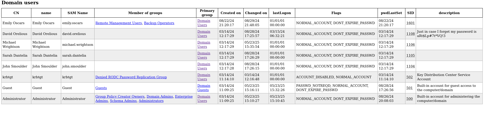 └─$ ldapdomaindump -u "cicada.htb\\michael.wrightson" -p 'Cicada$M6Corpb*@Lp#nZp!8' ldap://10.10.11.35