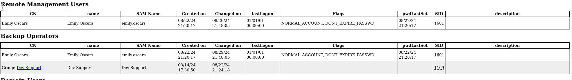 Emily Oscars might be the High valued target for us. She can Remote connect to the machine and have the backup privileges.