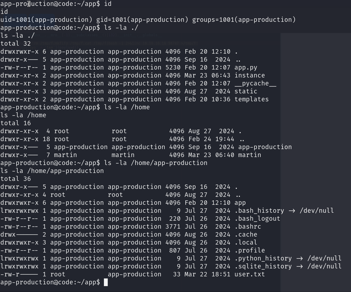 app-production@code:~$ strings app/instance/database.db