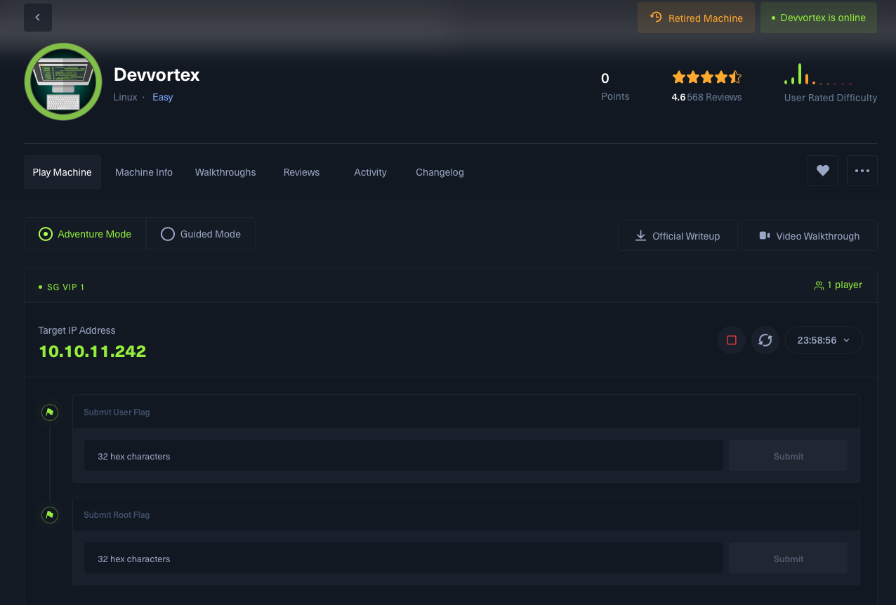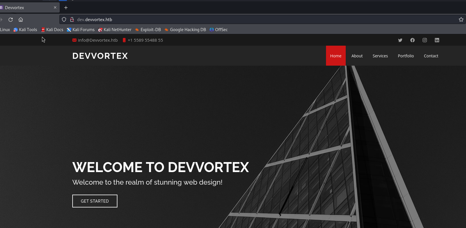 http://devvortex.htb; let’s add that to the/etc/hosts. - Web server is nginx/1.18.0; it may be interesting to look for vulnerabilities in this version.