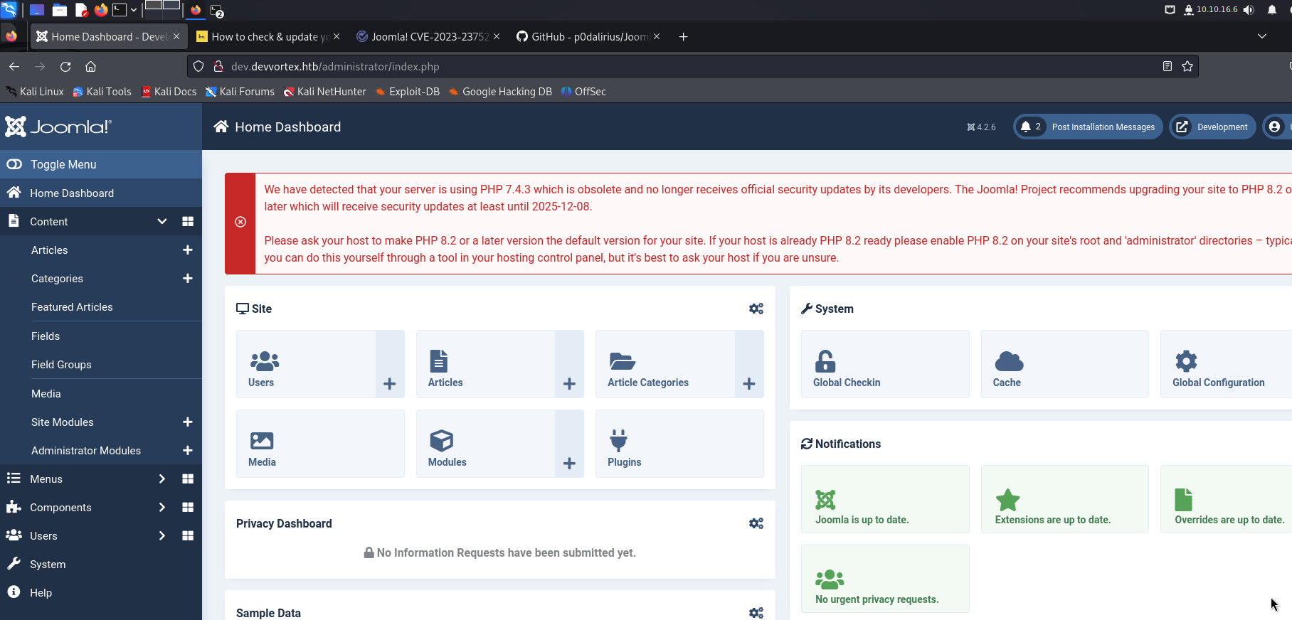 | 650 | logan paul | logan | logan@devvortex.htb | $2y$10$IT4k5kmSGvHSO9d6M/1w0eYiB5Ne9XzArQRFJTGThNiy/yBtkIj12 | 0 | 0 | 2023-09-26 19:15:42 | NULL | | {"admin_style":"","admin_language":"","language":"","editor":"","timezone":"","a11y_mono":"0","a11y_contrast":"0","a11y_highlight":"0","a11y_font":"0"} | NULL | 0 | | | 0 | |