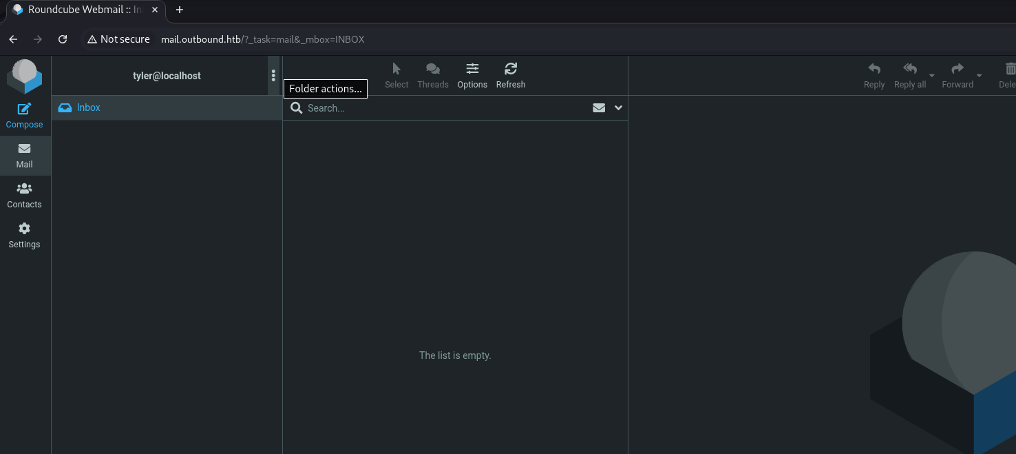 From the nmap output we knows that it will redirect us to http://mail.outbound.htb, where the domain name is outbound.htb. Let’s try to add these known domain and subdomain into our /etc/hosts and view the webpage