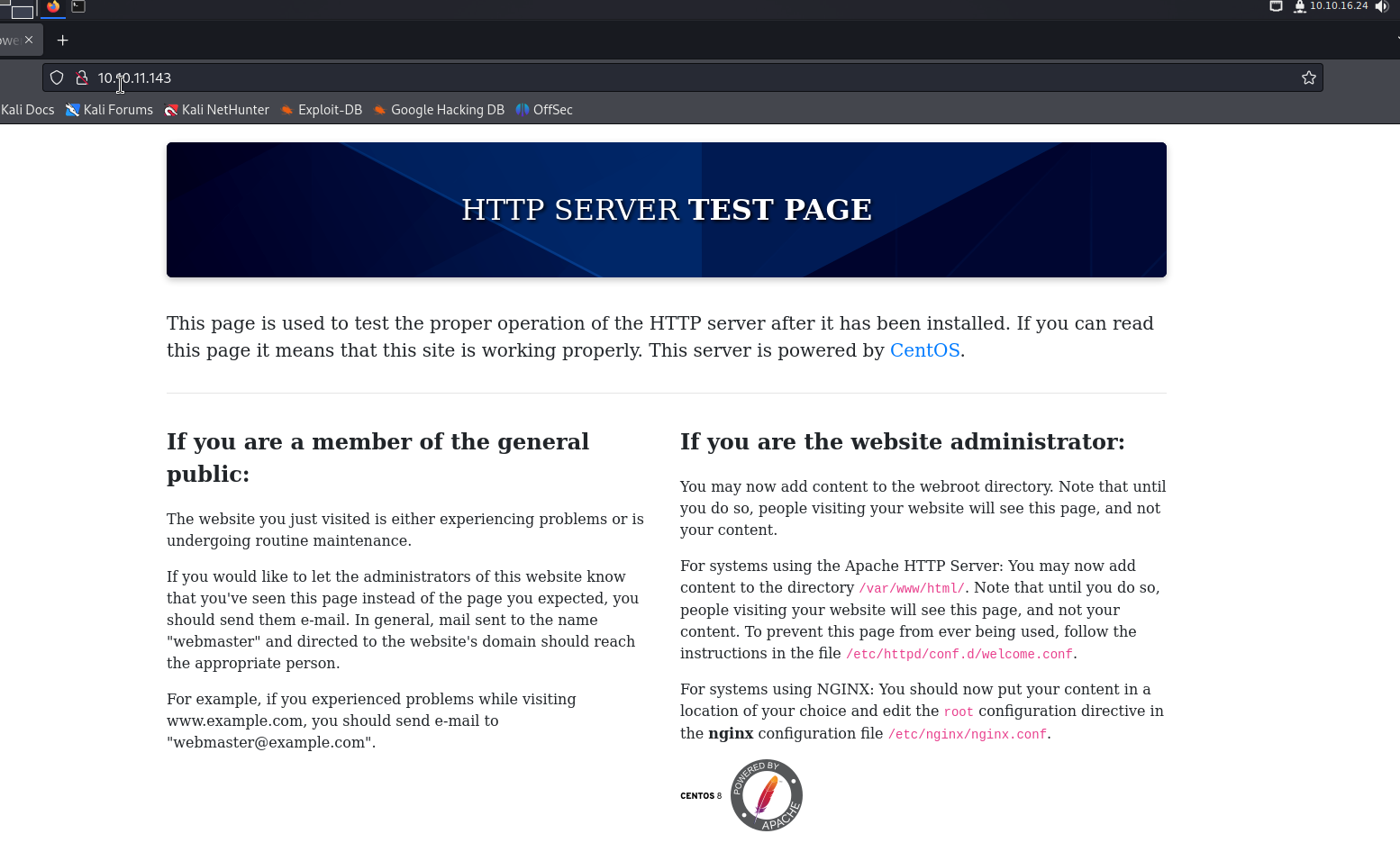 |_http-title: HTTP Server Test Page powered by CentOS