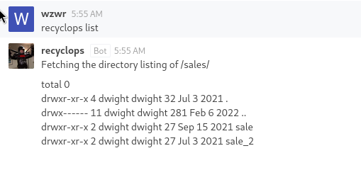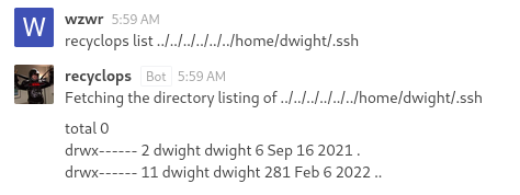 drwx------ 8 dwight dwight 163 Jul 3 2021 /home/dwight/hubot/.git