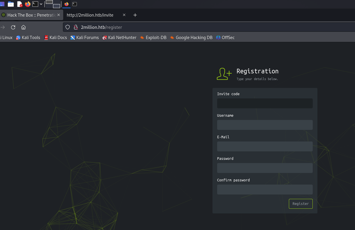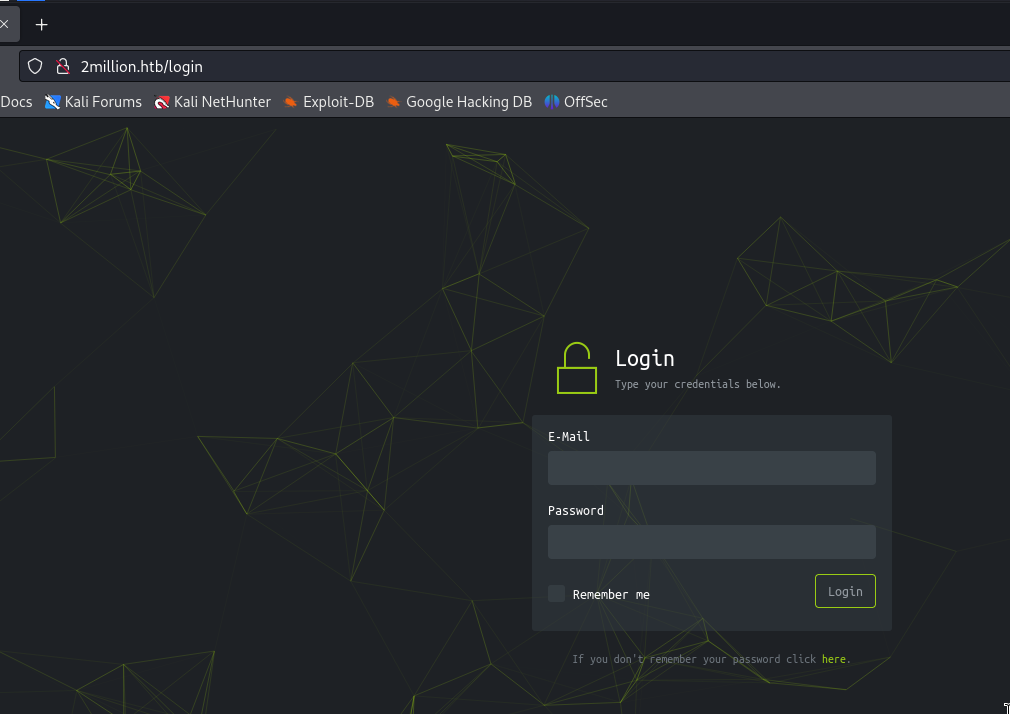 According to the nmap output, it redirects to 2million.htb, so I added this domain to my /etc/hosts file.