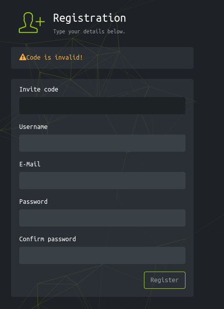 Invite Code Page