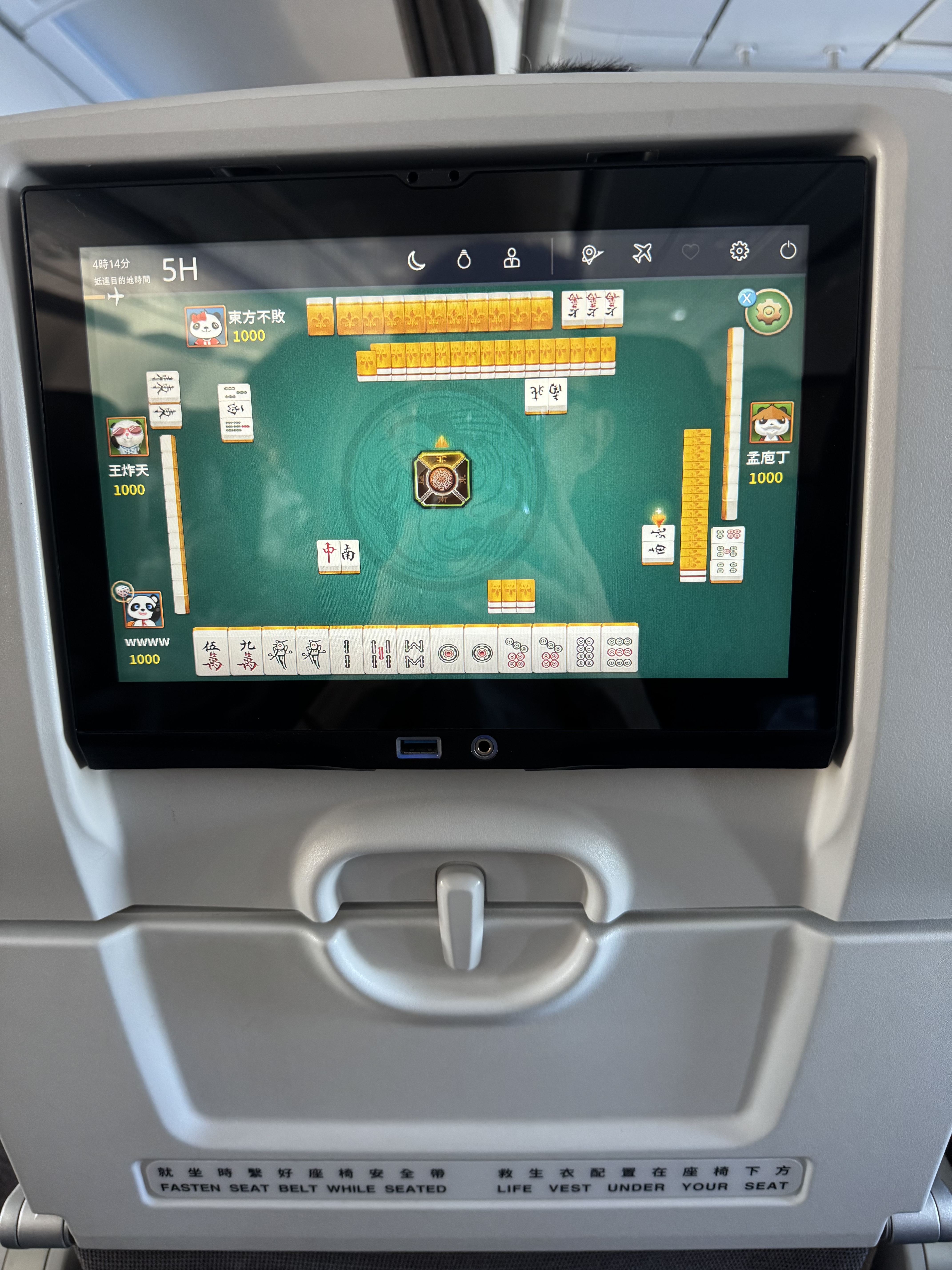 Finally tried the in-flight Mahjong mini-game (usually I fly budget so no fancy screens QQ).
