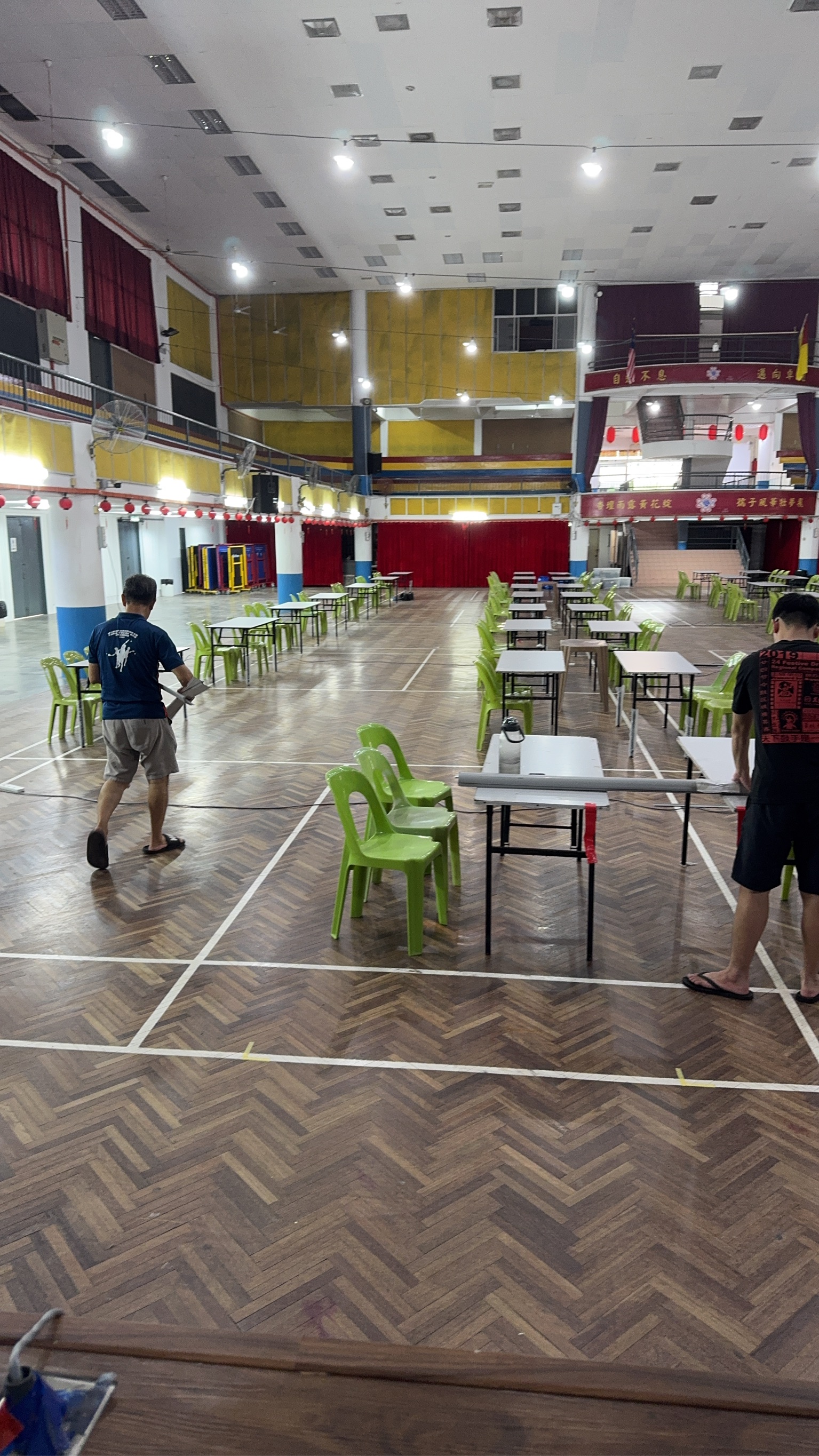 On Sept 17, we (the advanced team) headed to SMK Seri Seremban to start venue setup. Our job: place the server laptops in a side area next to the stage, set up the switches and router, confirm network details with the school’s IT (gateway IP, available IPs), and coordinate with the printer vendor to lock in IP settings.