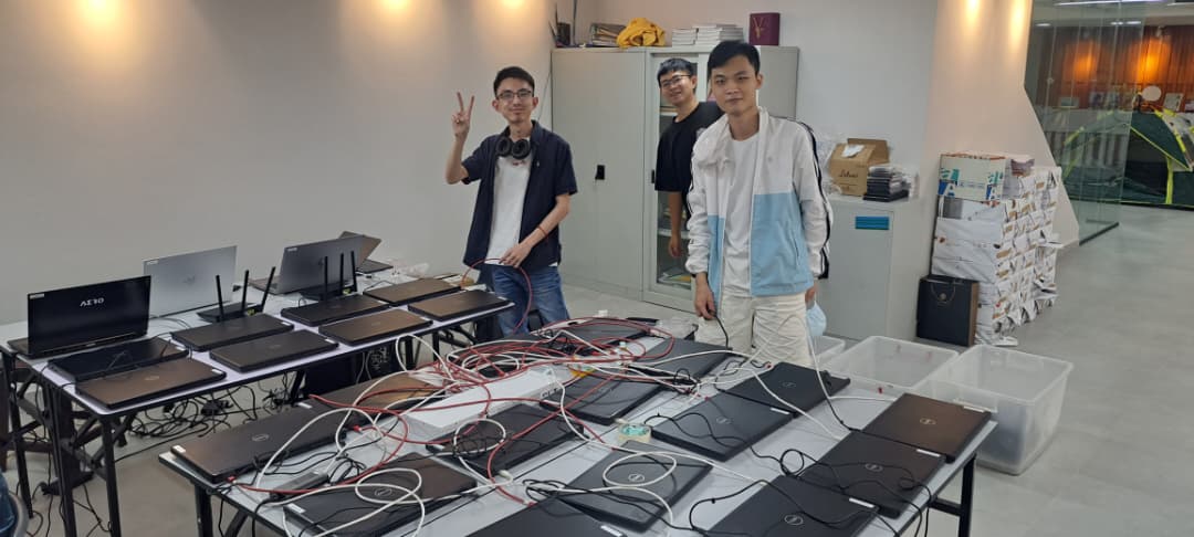 Sept 19: we hosted a test contest so students could check their laptop environments and the DOMJudge setup. After it ended, we collected all laptops, re-imaged them (just in case someone planted “creative” things during testing XD), and set final credentials and problems & contest. We worked till around 11 pm before heading back to the hotel.